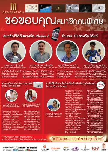 ประกาศรายชื่อผู้ที่ได้รับรางวัล กิจกรรม MGEN Thanks
