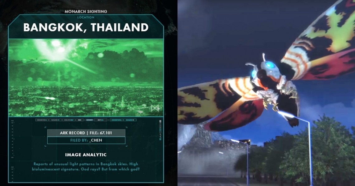 โดยหลังจากที่ก่อนหน้านี้ทางสื่อ WB ได้เผยภาพชุดใหม่ที่มาจากองค์กรวิทยาศาสตร์ Monarch (องค์กรที่มีตัวตนในจักรวาลหนังมีหน้าที่ศึกษา ติดตาม และกักกันเหล่าไททั่นยักษ์ในตำนาน) ให้แฟนๆได้เห็นกันมาก่อนแล้วสำหรับผู้ที่ร่วมงาน LA Comic Con เมื่อเดือนที่แล้ว ซึ่งจากภาพเหล่านี้ เราจะได้เห็นภาพที่ดูเป็นภาพถ่ายติดสัตว์ยักษ์หรือพลังของพวกมันจากที่ต่างๆทั่วโลก และภาพบางภาพก็ยังเป็นปริศนาอยู่ว่าคือภาพอะไร