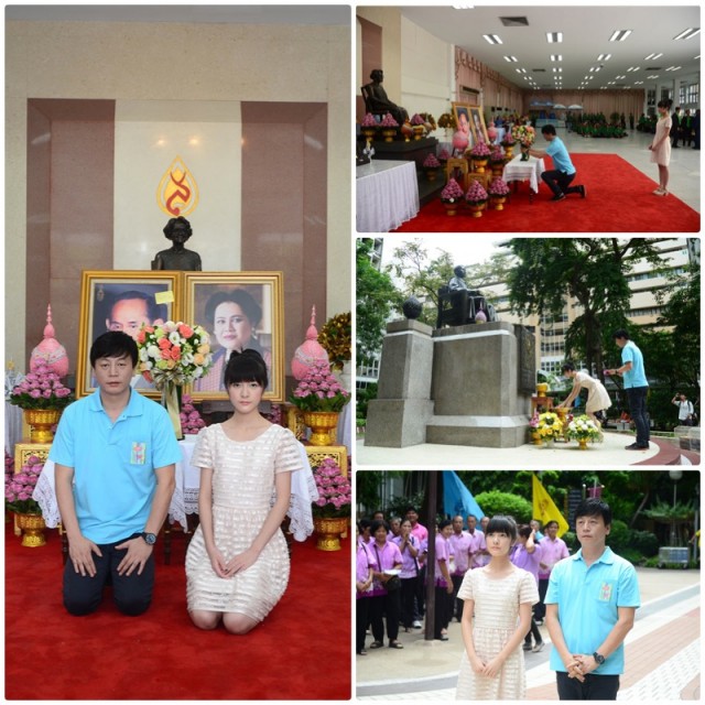 ซู เจียว (ริมขวา) นักแสดงดาวรุ่งแห่งเอเชีย เดินทางไปร่วมถวายพระพรพระบาทสมเด็จพระเจ้าอยู่หัว และสมเด็จพระนางเจ้าสิริกิติ์ พระบรมราชินีนาถ พร้อมทูลเกล้าทูลกระหม่อมถวายแจกันดอกไม้ เนื่องในโอกาสที่ได้เดินทางมาโปรโมทภาพยนตร์