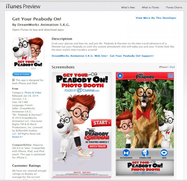อง Mr. Peabody & Sherman - ผจญภัยท่องเวลากับนายพีอดี้และเชอร์แมน โหลดแอพพิเคชั่นมาเล่นได้จากทั้งApple Store และ GOOGLE PLAY รีบโหลดมาเล่นกันเถอะ เดี๋ยวจะคุยกับเค้าไม่รู้เรื่อง