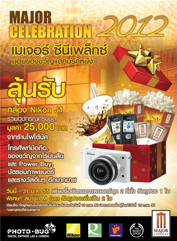 รับของรางวัลที่โรงภาพยนตร์เมเจอร์ ซีนีเพล็กซ์ สาขาที่ระบุไว้ท้ายรายชื่อ ภายในวันที่ 10 มี.ค. 55 เท่านั้น