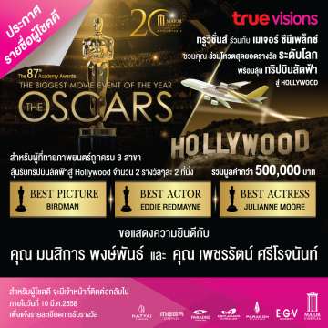ทรูวิชั่นส์ ร่วมกับ เมเจอร์ ซีนีเพล็กซ์ ชวนคุณร่วมโหวตสุดยอดรางวัลระดับโลก Oscars ครั้งที่ 87 พร้อมลุ้นทริปบินลัดฟ้า สู่ Hollywood