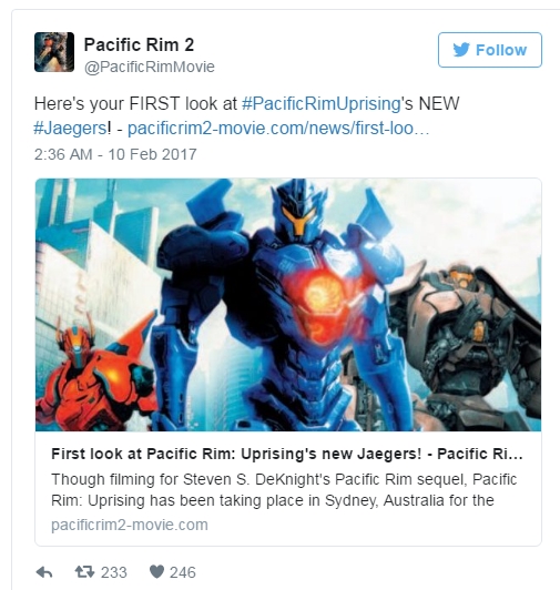 ตั้งแต่เปิดกล้องเมื่อหลายสัปดาห์ก่อน หนังภาคต่ออย่าง Pacific Rim ก็มีเซอร์ไพร์ให้แฟนๆได้ตื่นเต้นโดยล่าสุด เว็บไซต์ License Global Magazine ก็มีการปล่อยภาพใหม่จากหนังเรื่อง Pacific Rim: Uprising โดยเป็นภาพวาดหุ่นยนต์เยเกอร์แบบใหม่ 3 ตัว ซึ่งแตกต่างจากแบบร่างของหุ่นยนต์ ยิปซี แดนเจอร์ ที่ปล่อยออกมาก่อนหน้านี้หุ่นยนต์เยเกอร์ที่ 3 ที่เผยโฉมออกมา ประกอบไปด้วยสีแดง สีน้ำเงิน และสีเทา โดยตัวสีน้ำเงินมีช่องปล่อยนิวเคลียร์อยู่ตรงกลางหน้าอก คล้ายกับรูปลักษณ์ของ ยิปซี แดนเจอร์ ที่อาจกลับมาในภาคนี้เหมือนกัน