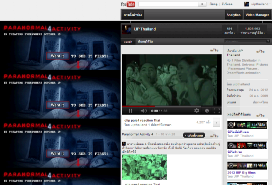 หลังจากความสำเร็จในการเปิดตัวแรงเกินคาดครองแชมป์อันดับหนึ่งที่อเมริกา ภาพยนตร์สยองขวัญแนวเรียลลิตี้ภาคต่อที่ทั่วโลกรู้จักกันดี พารานอร์มอล แอคทิวิตี้ 4 เกาะกระแสเทศกาลฮาโลวีนคืนปล่อยผี จัดเต็ม 13 คลิปสุดหลอนให้แฟนๆได้ดูกันอย่างสะใจ โดยตัดตอนเอาฉากเด็ดๆที่เผยให้เห็นถึงเหตุการณ์ที่น่ากลัว ซึ่งจะมีความเฮี้ยนที่แรงกว่าทุกๆภาคด้วย ชวนแฟนๆคลิกไปชมคลิปสุดสยองของพารานอร์มอล แอคทิวิตี้ 4 ได้ที่ www.youtube.com/uipthailand