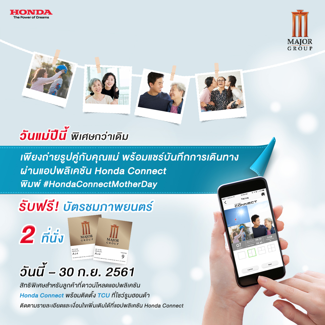 4.Honda Connect Privilege วันแม่ปีนี้ พิเศษกว่าเดิม รับฟรีบัตรชมภาพยนตร์ 2 ที่นั่ง