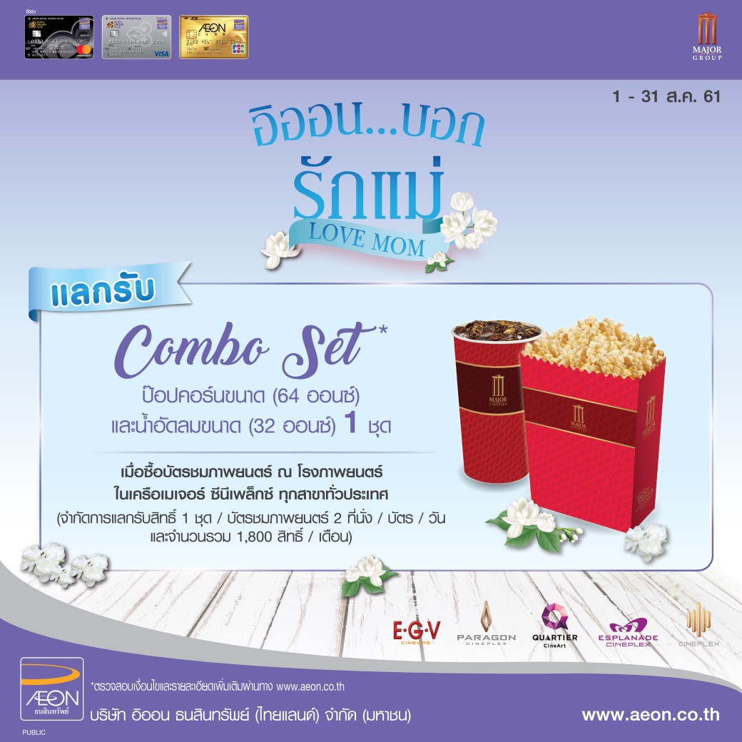2. AEON บอกรักแม่ รับฟรี Combo Set 1 ชุด ระยะเวลา : ตั้งแต่วันที่ 1– 31 สิงหาคม 2561