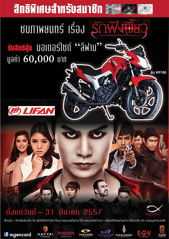 ประกาศรายชื่อผู้โชคดีจากภาพยนตร์เรื่อง “รักฝังเขี้ยว” รับรางวัล “รถจักรยานยนต์ ยี่ห้อ ลีฟาน รุ่น KP150” จำนวน 1 รางวัล มูลค่า 60,000 บาท