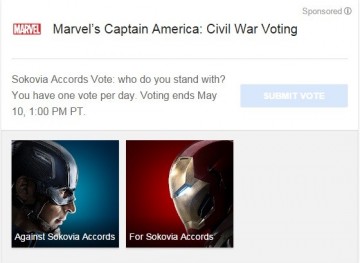 Marvel ได้เปิดโหวตให้ลงมติ เห็นด้วยหรือไม่เห็นด้วยกับ สนธิสัญญาโซโคเวีย ว่าด้วยกรอบปฏิบัติในการควบคุมการทำงานของซุปเปอร์ฮีโร่ว่าจะต้องได้รับฉันทานุมัติจากรัฐบาลให้เห็นชอบในการปฏิบัติภารกิจ ซึ่งสนธิสัญญาโซโคเวีย กลายเป็นส่วนหนึ่งในการจุดชนวนความแตกแยกในทีม Avengers โดยผู้ที่ร่วมโหวตสามารถพิมพ์คำว่า sokovia accords vote ใน google และเลือกโหวตเห็นด้วยหรือไม่เห็นด้วยได้เลย โดยการโหวตดังกล่าวจะปิดการลงเสียงในวันที่ 10 พฤษภาคม นี้