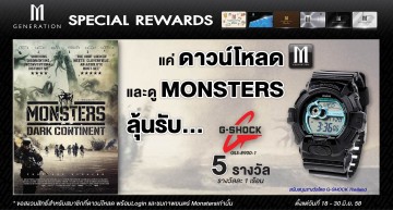 ● สิทธิพิเศษเฉพาะสมาชิก M GEN ที่ดาวน์โหลด Application M GEN Card ผ่านทาง App Store และ Google Play โดยทำการ Log in เข้าระบบสมาชิก และชมภาพยนตร์เรื่อง Monsters Dark Continent