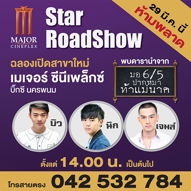 พบกับ นักแสดงนำจากภาพยนตร์ มอ 6/5 ปากหมาท้าแม่นาค นิก / บิว / เจมส์ พร้อม MEET & GREET ร่วมสนุกและลุ้นรับของรางวัลมากมาย เวลา 14.00 น.เป็นต้นไป ที่ เมเจอร์ ซีนีเพล็กซ์ บิ๊กซี นครพนม