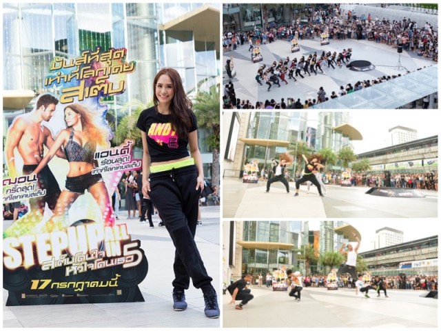 เรียกความฮือฮาหยุดทุกสายตาใจกลางกรุงเทพฯ ระเบิดกระแสฟีเวอร์ “STEP UP ALL IN สเต็บโดนใจ หัวใจโดนเธอ 5” ของเมืองไทยอย่างยิ่งใหญ่เมื่อวันเสาร์ที่ผ่านมา โดยมงคลเมเจอร์ ร่วมกับ ศูนย์การค้าสยามพารากอน และโรงภาพยนตร์พารากอน ซีนีเพล็กซ์ ร่วมใจกันเปลี่ยนลานพาร์ค พารากอน ศูนย์การค้าสยามพารากอน ให้กลายเป็นเวทีแบทเทิลใจกลางกรุงเทพฯ ของเหล่า สเต็บเทพเมืองไทย นำทีมโดย ปันปัน เต็มฟ้า กฤษณายุธ ศิลปินดาวรุ่งจากค่ายฟร้อนเทจ จีเอ็มเอ็ม แกรมมี่ และ ทีมนักเต้นชั้นนำระดับประเทศจาก D Dance Troupe โดยครูอู๋ เปรมจิตต์ อำนรรฆมณี ที่มารวมตัวกันโชว์พลังสเต็บจากแรงบันดาลใจของคาแรกเตอร์ขวัญใจแฟน STEP UP เพื่อต้อนรับการกลับมาของสเต็บเดียวที่วัยรุ่นทั้งโลกเฝ้ารอ เรียกทุกสายตาจากผู้ชมให้ต้องหยุดทึ่งแน่นลานพาร์ค พารากอน พร้อมกับสร้างกระแสบอกต่ออย่างรวดเร็ว