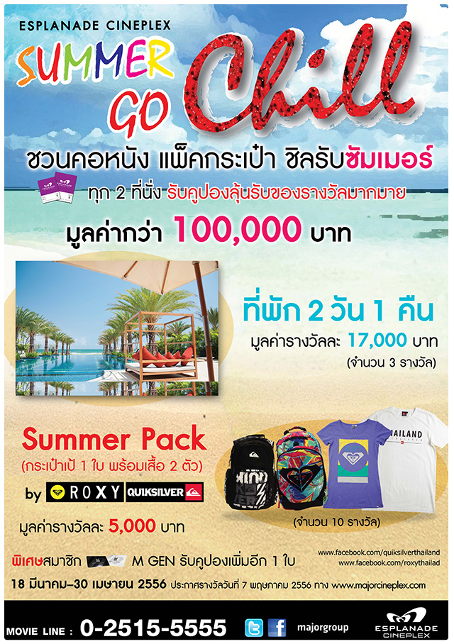 ประกาศรายชื่อชื่อผู้โชคดี ESPLANADE CINEPLEX : SUMMER-GO-CHILL