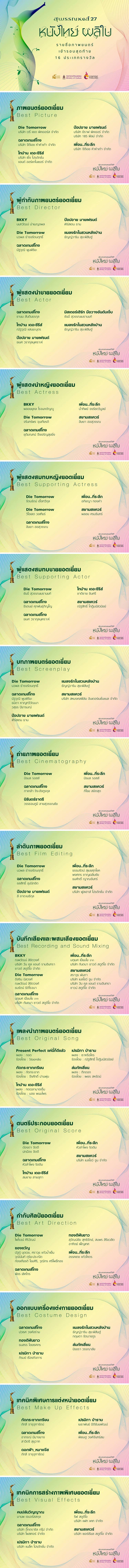 ได้ประกาศรายชื่อหนังที่ได้รับการเสนอชื่อเข้าชิงใน 16 สาขา โดยงานประกาศผลจะมีขึ้นในวันที่ 11 มีนาคมนี้