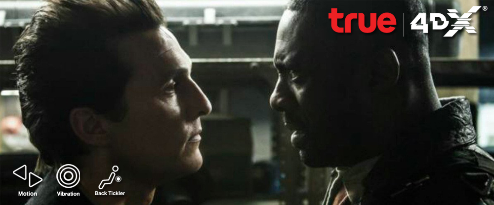 ภาพยนตร์ The Dark Tower ถูกดัดแปลงมาจากนิยายชุดขายดีและมีรางวัลการันตีมากมายของสตีเฟ่น คิง ที่ได้ “ไอดริส เอลบา” และ “แมทธิว แมคคอนนาเฮย์” สองนักแสดงชื่อดังมารับบทนำเป็น “สิงห์ปืนไว” และ “ชายชุดดำ” ตัวละครจากสองฝ่ายที่มีเป้าหมายแตกต่างกัน คือฝ่ายหนึ่งปกป้อง ส่วนอีกฝ่ายจ้องทำลาย โดยมีหอคอยทมิฬและ “เจค แซมเบอร์ส” หนุ่มน้อยผู้มีพลังพิเศษเป็นกุญแจสำคัญเพื่อบรรลุเป้าหมายนั้น แค่พล็อตเรื่องก็น่าสนใจแล้ว แถมรับรองว่าต้องได้เห็นฉากบู๊แบบยิงกันสนั่นหวั่นไหว มันส์สุดๆแน่นอน ส่วนเรื่องราวจะเป็นยังไงต่อไป ต้องมาติดตามในระบบ 4DX เท่านั้น ด้วยเอฟเฟ็คท์กว่า 16 ชนิดที่พร้อมจะเสริมความมันส์ของการชมภาพยนตร์ให้คุณในทุกๆฉาก ตื่นเต้นจนแทบนั่งไม่ติด แต่จะมีเอฟเฟ็คท์อะไรน่าสนใจในฉากไหนกันบ้าง ไปดูกันเลย!