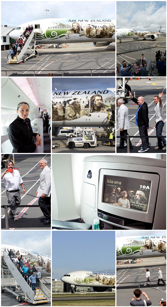 สายการบิน New Zeland ได้เผยโฉมลวดลายของเครื่องบิน โบอิ้ง 777-300 ที่เป็นธีมของภาพยนตร์เรื่อง The Hobbit: An Unexpected Journey ที่จะเข้าฉายในประเทศไทยวันที่ 13 ธันวาคมนี้ งานนี้ผู้กำกับ ปีเตอร์ แจ็คสัน ทำทีมเหล่านักแสดงจากภาพยนตร์เรื่องนี้ ทดลองนั่งเครื่องบินลำนี้มาที่ประเทศนิวซีแลนด์ ก่อนงานรอบปฐมทัศน์ The Hobbit: An Unexpected Journey ที่มีงานไปแล้วเมื่อวันที่ 28 พฤศจิกายน ที่ผ่านมา สร้างความตื่นตาตื่นใจให้กับทีมนักแสดงและสื่อมวลชนที่มาร่วมทำข่าวนี้เป็นอย่างมาก และยังมีทิ้งท้ายไว้ว่าใน The Hobbit: The Desolation of Smaug ก็จะมีเครื่องบินที่ถูกแปลงโฉมเป็น The Hobbit เช่นกัน