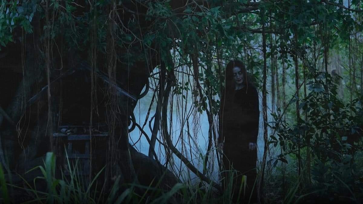 ถ้าเราลองสังเกตเบาะแสที่ภาพยนตร์หยอดเอาไว้ เราจะเห็นลักษณะการปรากฎตัวของผีตัวนี้ ทั้งการเป็นหญิงแปลกหน้าที่ไม่คุ้นตาในหมู่บ้าน, ของสดเหม็นเน่าที่อยู่บริเวณต้นไม้, อาการของผู้ที่ตกเป็นเหยื่อจนถึงแก่ชีวิตที่อวัยวะภายในและลำไส้ถูกทำลายไปจนหมด, ความดุร้ายเจ้าเล่ห์ของมันที่แสดงออกมาผ่านการสิงสู่
