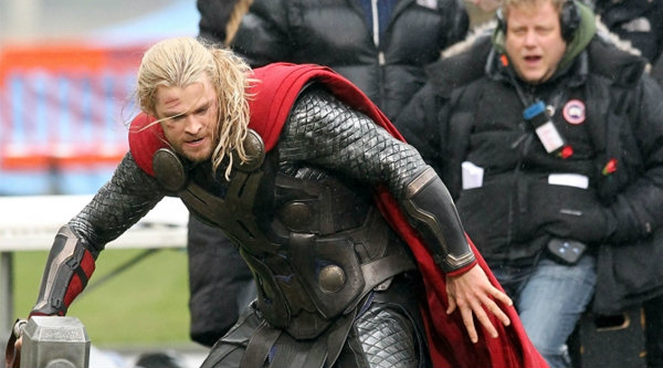 คริส เฮมส์เวิร์ธ กับบทบาท ธอร์ ในภาพจากกองถ่าย Thor : The Dark World