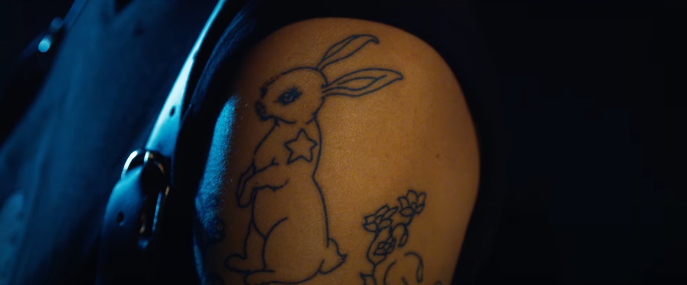 สิ่งที่น่าสนใจและดูเหมือนจะบอกใบ้อะไรบางอย่างกับเราในตัวอย่างนี้ก็คือ เพลงประกอบของตัวอย่างที่ใข้เพลง White Rabbit ของ Jefferson Airplane กับบรรดากระต่ายที่ปรากฎในตัวอย่าง ก็ดูจะเป็นตัวแทนของอะไรบางอย่างที่เป็นสัญลักษณ์ที่กำลังจะนำพาโธมัสให้กลับเข้าสู่เมทริกซ์อีกครั้ง การตามรอยของโธมัส นำเขาไปเจอกับผู้หญิงผมฟ้าคนนี้ ที่เราคิดว่าน่าจะเป็นตัวละครที่รับบทโดย Jessica Henwick
