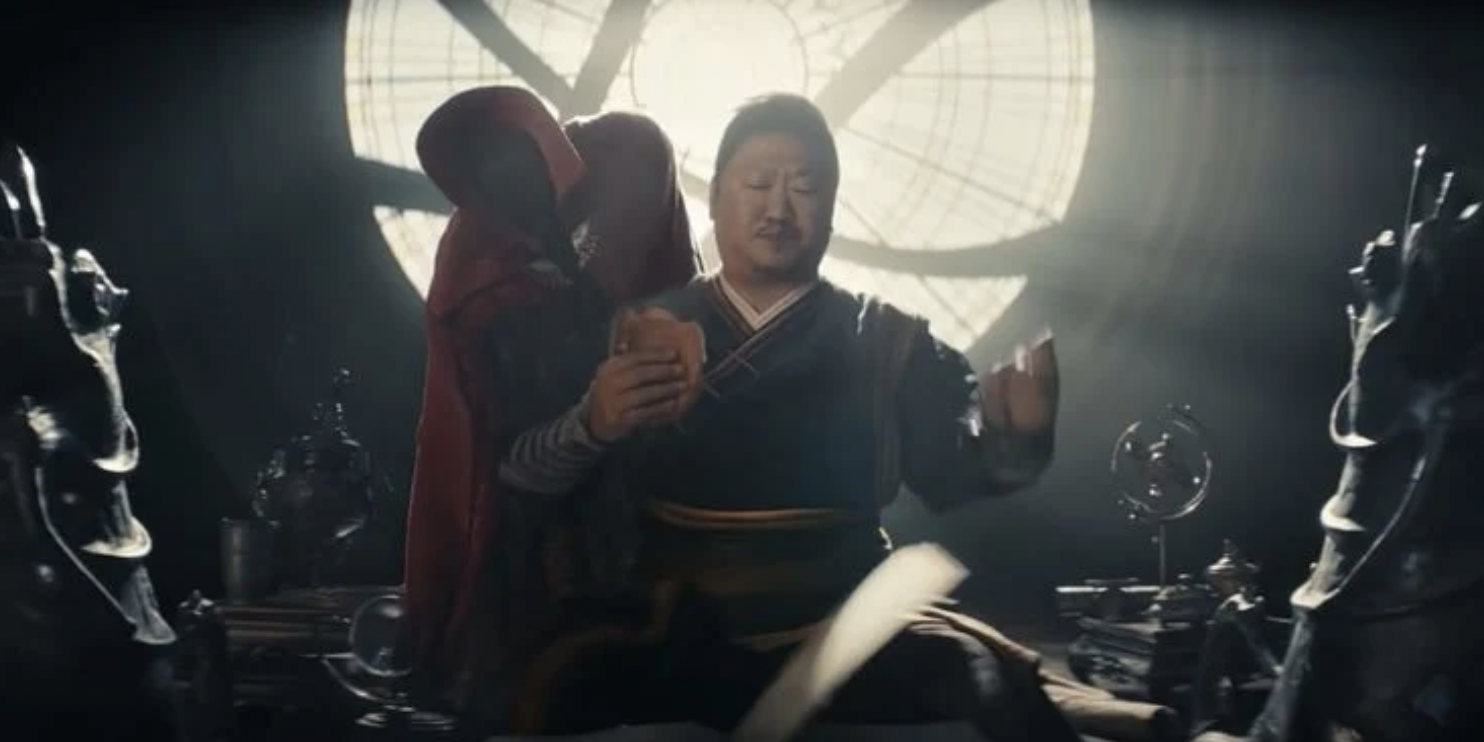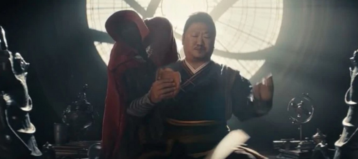 หว่องกำลังทานอาหาร อ่านหนังสือ และ ต่อสู้ ร่วมกับผ้าคลุมสีแดงตัวโปรดของด็อกเตอร์สเตรนจ์