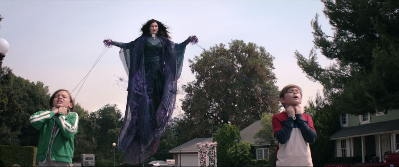 เหตุการณ์ครั้งนี้ตกอยู่ในสายตาของแม่มดโบราณคนหนึ่งที่มีชื่อว่า อกาธา ฮาร์กเนส เธอได้ปลอมตัวมาเพื่อสืบหาความสามารถที่แท้จริงของวานด้า พร้อมกระตุ้นให้พลังของเธอเติบโตขึ้นมากกว่าเดิม และเธอก็ได้เป็นสักขีพยานในการที่วานด้าใช้พลังของตัวเอง สร้างลูกฝาแฝดขึ้นมา นั่นคือ บิลลี่ และทอมมี่ เด็กน้อยแสนน่ารักเติบโตขึ้นมาและกลายเป็นแก้วตาดวงใจของวานด้า ขณะเดียวกันนั้น วิชั่นก็เริ่มรู้สึกไม่ชอบมาพากลกับเหตุการณ์ที่เกิดขึ้น และเริ่มสืบหาความจริง จนเขาสามารถทะลุออกไปจากกำแพงมิติที่วานด้าสร้างขึ้น พบว่าทั้งหมดนี้ไม่ใช่เรื่องจริง และภายนอกมีหน่วยของซอร์ดคอยสังเกตการณ์ และพยายามช่วยคนในเมืองอยู่