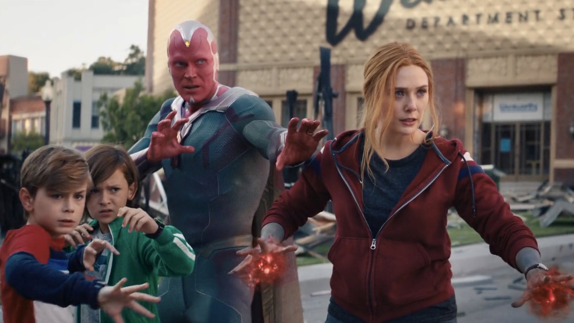 การระเบิดพลังนี้สร้างบ้านในฝันของเธอขึ้นมาเป็นรูปเป็นร่าง ก่อนที่มันจะแผ่กระจายเปลี่ยนเมืองทั้งเมืองให้กลายเป็นอาณาเขตของเธอ ทุกสิ่งย้อนกลับไปเป็นเหมือนซิตคอมยุคเก่า ไม่เพียงเท่านั้น วานด้าสร้างวิชั่นขึ้นมาโดยแบ่งพลังของ Mind Stone ที่อยู่ในตัวออกมาเป็นร่างของแอนดรอยด์คนนี้ และทั้งคู่ก็ใช้ชีวิตอยู่ร่วมกันในแบบสามีภรรยา แต่ความโหดร้ายที่วานด้าพลั้งมือไปก็คือ เธอกักขังจิตใจของผู้คนทั้งเมือง เปลี่ยนพวกเขาให้กลายเป็นตัวละครในเรื่องราวของตัวเอง