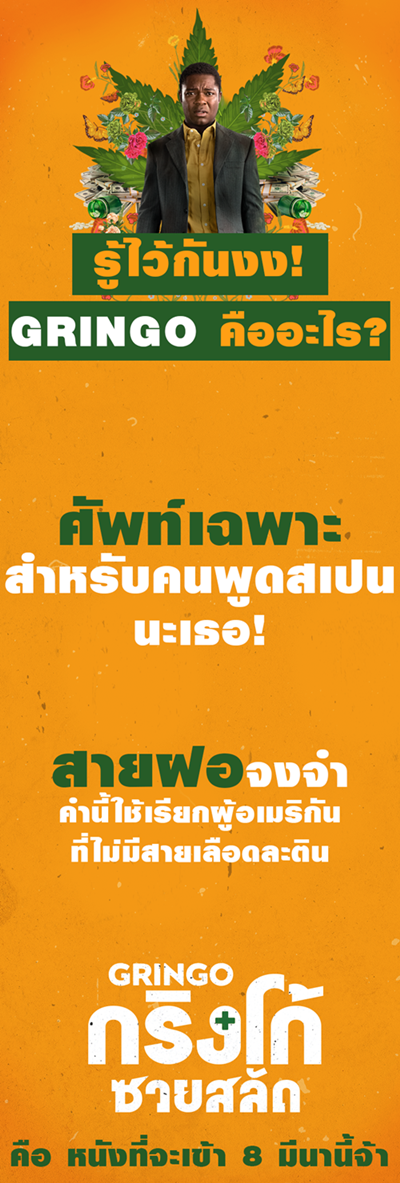 ซึ่งก่อนที่แฟนๆ ชาวไทยจะได้ไปเต็มอิ่ม เติมความซวยกันใน “Gringo กริงโก้ซวยสลัด” หลายคนอาจจะยังสงสัยในความหมายของคำว่า “Gringo” ว่าคืออะไร? ทำไมต้อง “Gringo”? แล้วทำไม “Gringo” ถึงซวย? เรามีคำตอบ “Gringo” เป็นศัพท์เฉพาะสำหรับชาวสเปนใช้เท่านั้น โดยจะใช้เรียกผู้ชายอเมริกันที่ไม่มีสายเลือดละติน รู้แบบนี้แล้วทุกคนจะได้เข้าใจและไม่เอาไปใช้ผิดๆ หรือจำง่ายๆ ก็ได้ว่า “Gringo” เป็นหนังที่จะเข้าวันที่ 8 มีนาคมนี้!