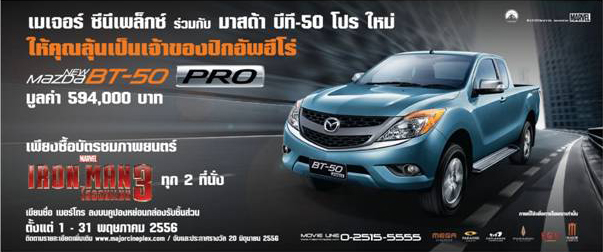ประกาศรายชื่อผู้โชคดี จากโปรโมชั่น ลุ้นเป็นเจ้าของ มาสด้า บีที-50 โปร กับ IRON MAN 3