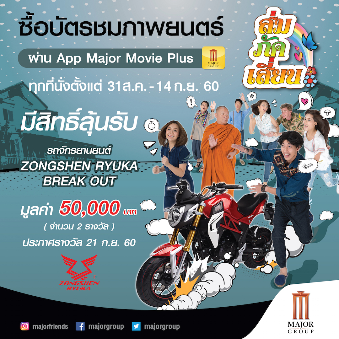 ผู้โชคดีติดต่อยืนยันสิทธิทาง Email:online@majorcineplex.com