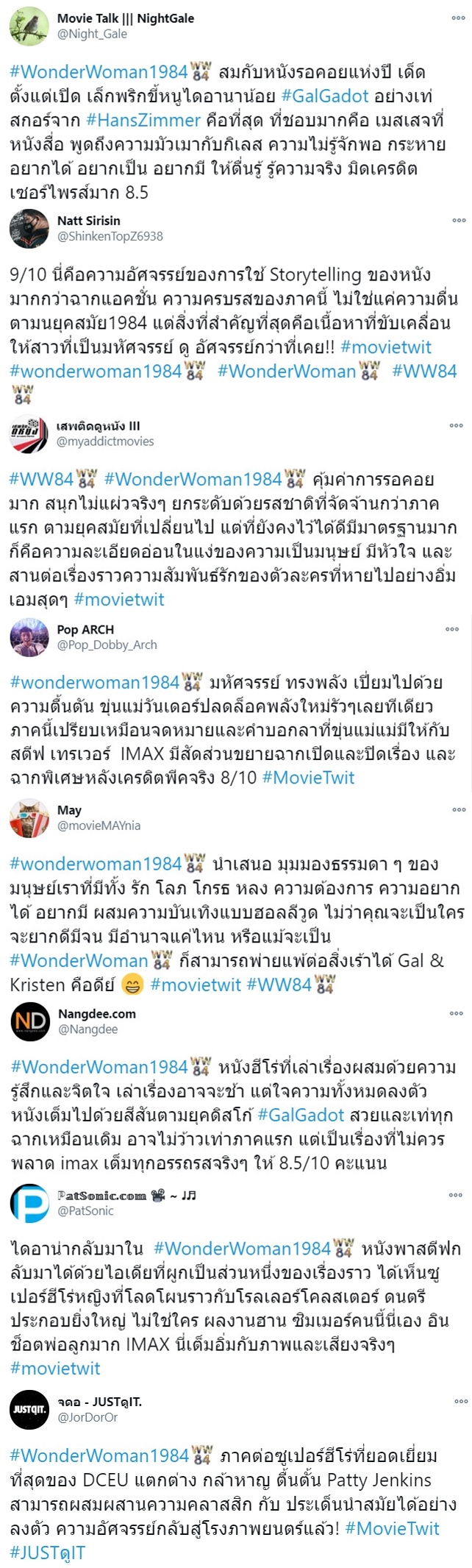 หลังจากต้องรอคอยกันมาเป็นเวลานาน ในที่สุด Wonder Woman 1984 ก็ได้เข้าฉายในโรงภาพยนตร์ ท่ามกลางสถานการณ์ทั่วโลกที่ยังคงไม่กลับเข้าสู่ภาวะปกติ นี่อาจจะเป็นภาพยนตร์ที่จะเข้ามาช่วยปลอบประโลมหัวใจของพวกเราได้ แม้ว่าเรื่องราวในภาคนี้จะยังคงอยู่ในอดีต แต่เป็นยุค 80s ยุคแห่งสีสันและความเจริญรุ่งเรือง แน่นอนว่าเธอคนนี้กลับมาพร้อความมหัศจรรย์ ซึ่งความคิดเห็นแรกจากหน้าโรงภาพยนตร์ก็ยืนยันตรงกันว่า นี่คือการส่งความสุขท้ายปีที่ยอดเยี่ยม ไปลองดูกันว่ารีวิวชุดแรกของชาวไทย ว่าอย่างไรบ้าง??