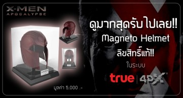 ชมภาพยนตร์ X-Men: Apocalypse ในระบบ 4DX มากที่สุด ได้รับหมวกแมกนิโต้ ลิขสิทธิ์แท้ มูลค่า 5,000 บาท จำนวน 1 รางวัล