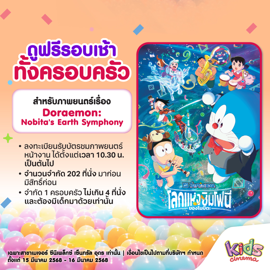 ดูหนังฟรีทั้งครอบครัว รอบเช้า สำหรับภาพยนตร์เรื่อง โดราเอมอน เดอะมูฟวี่ โลกซิมโฟนี่ของโนบิตะ