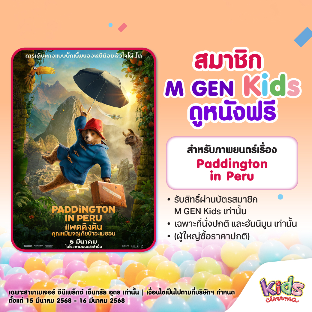 เด็ก M Gen Kids ดูหนังฟรี (ผู้ใหญ่ซื้อราคาปกติ สำหรับภาพยนตร์เรื่อง แพดดิงตัน คุณหมีผจญภัยป่าอะเมซอน)