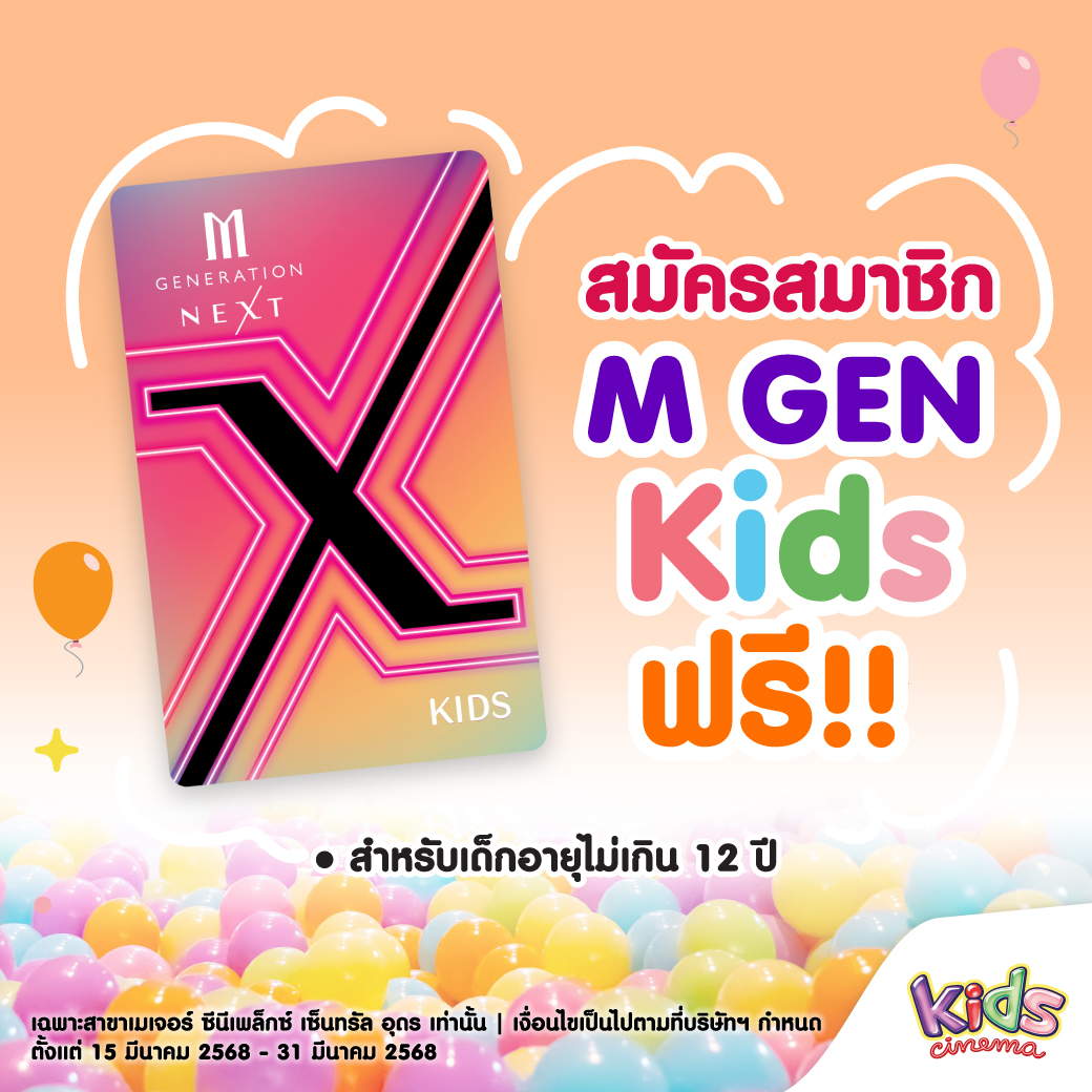 • สงวนสิทธิ์สำหรับสมาชิก M Gen Kids ดูฟรี (เด็กอายุไม่เกิน 12 ปีบริบูรณ์)