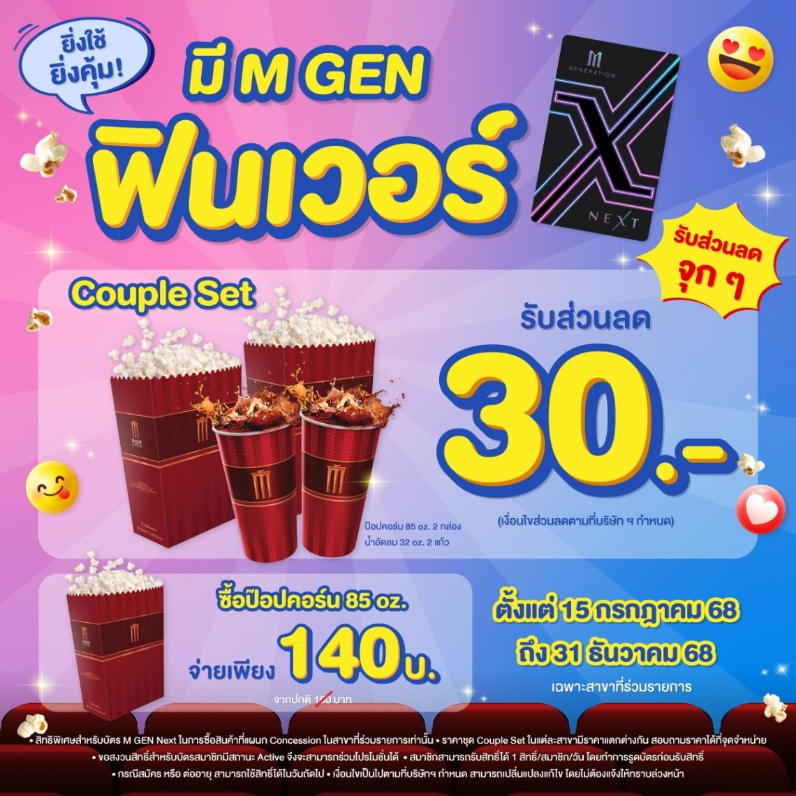 M GEN Next รับส่วนลด 30 บาททันที สำหรับป๊อปคอร์น Couple Set