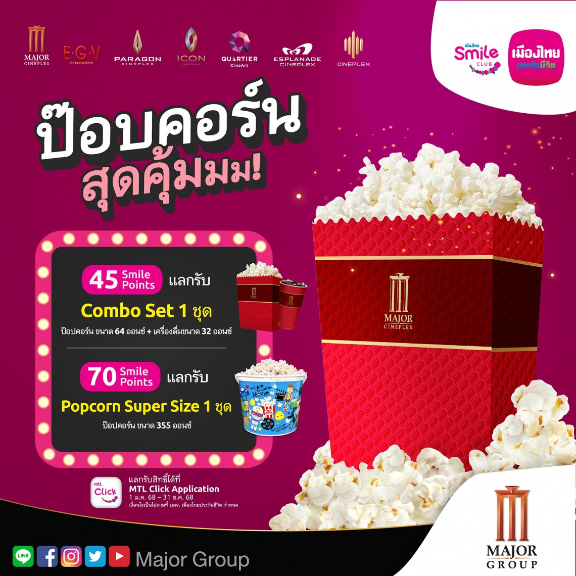 •  เงื่อนไขการรับ ชุดPopcorn ทุกชุด เป็นไปตามที่ บมจ. เมเจอร์ ซีนีเพล็กซ์ กรุ้ป กำหนด